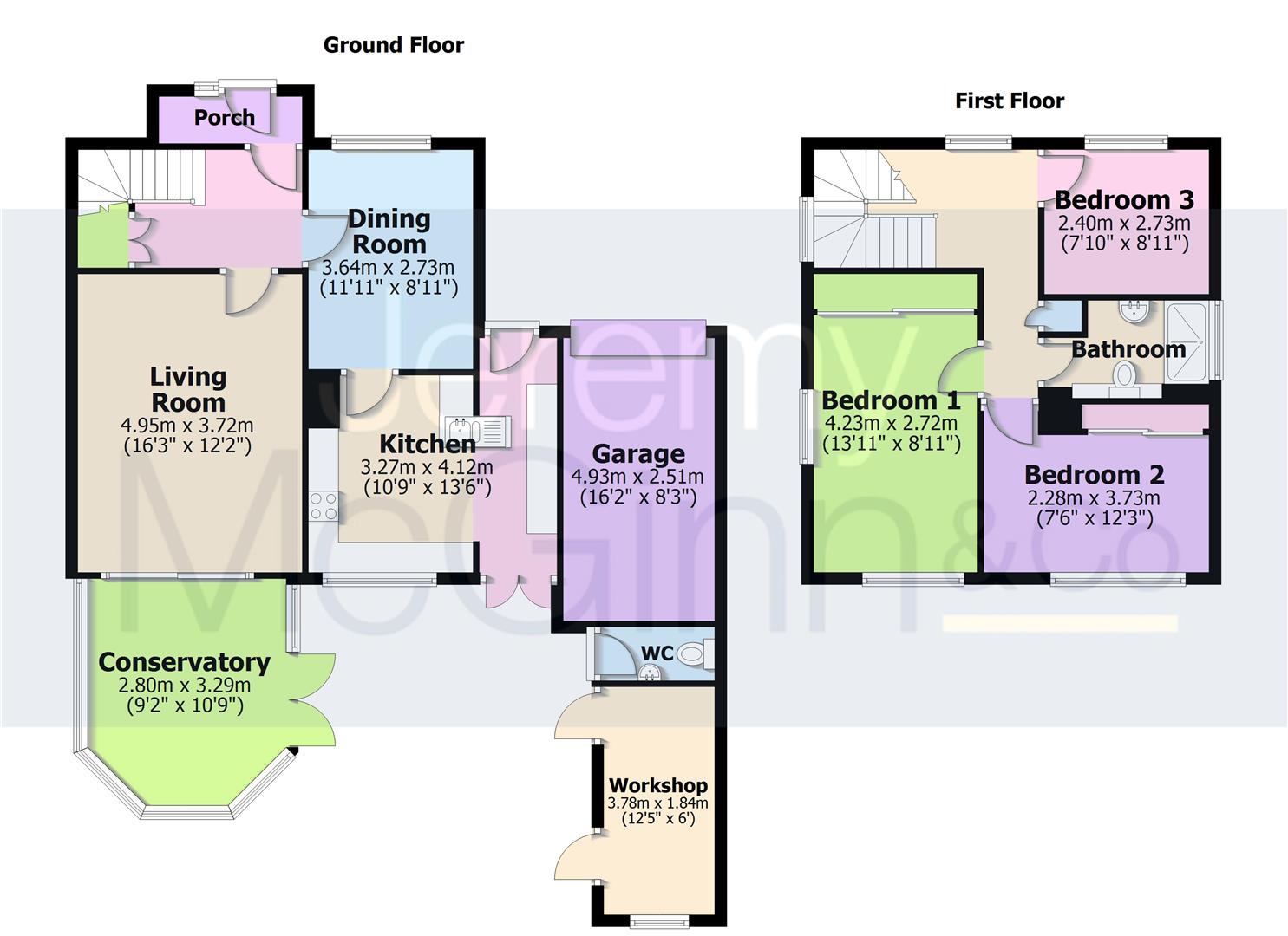 There is a good sized garage to the side together with a useful workshop & timber shed. The rear garden is enclosed and of good proportion.