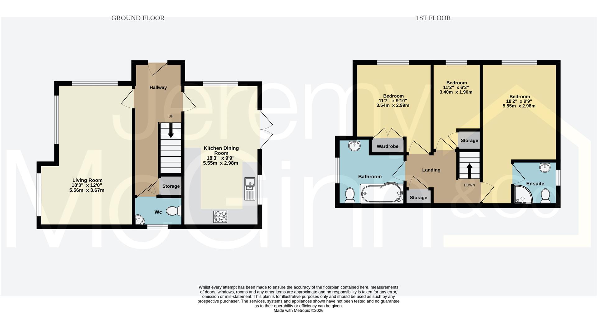 Upstairs, a central landing leads to three well-proportioned bedrooms, two of which benefit from fitted wardrobes. The principal bedroom features its own en-suite shower room, while the remaining bedrooms are served by a well-appointed family bathroom.